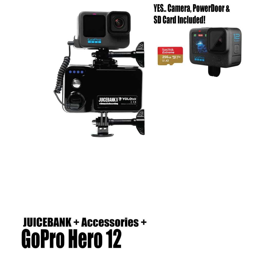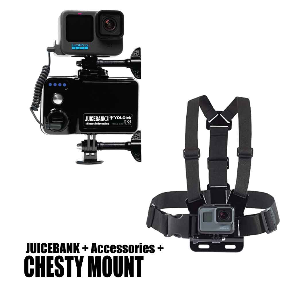 JUICEBANK: GoPro Battery+Mount... Power GoPro up to 9 hours & only 8.5oz. Tired of your GoPro, DJI or other action camera dying on your fence mount, GoPro Chesty, The BOOM! or other mount... this is what you have been waiting for. Works with EVERY ACTION CAMERA EVER MADE! That's right, all-day-power and you simply mount your GoPro or other Action Camera right on top with the included Quick Release and PLUG-IT-IN! And yes, you can take it on board the plane with you while traveling.