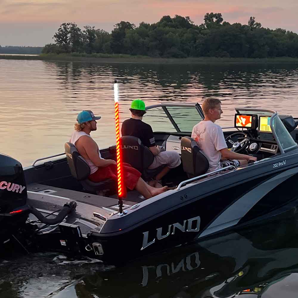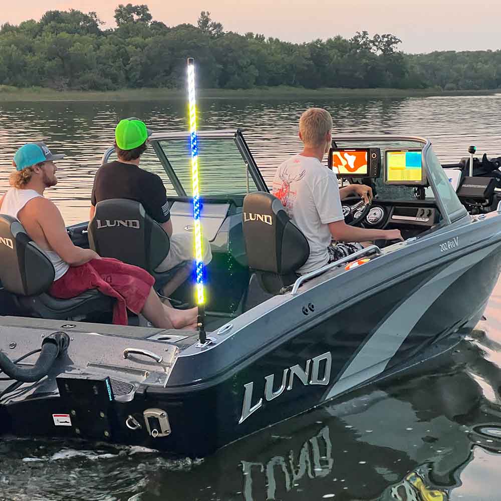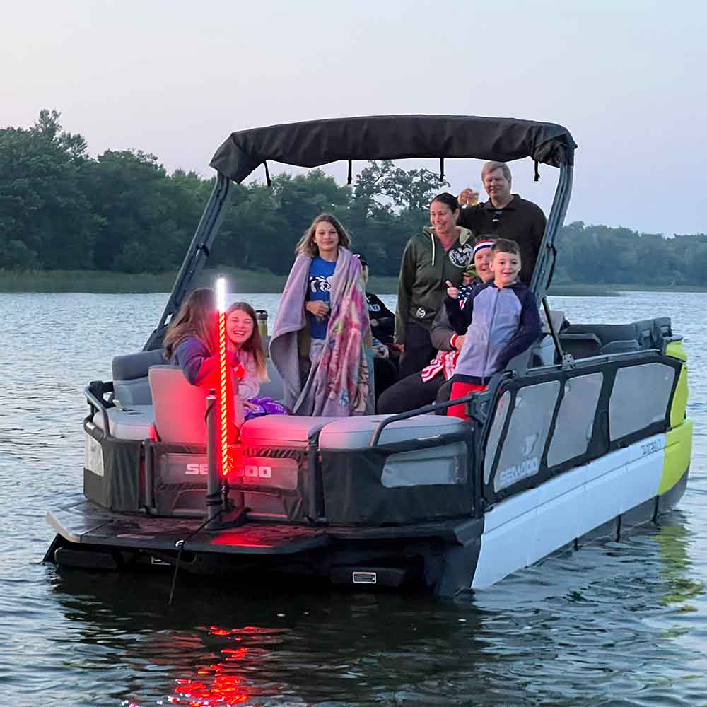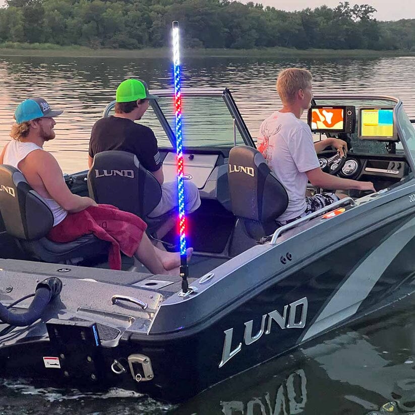 The most epic navlight in the world. The best way to stay safe & have fun & now with a dozen Red, White & Blue Modes #AMERICA ... YES, it is Coast Guard Approved 2NM (nautical mile) visibility. The Top 6" remain white when lights are on.