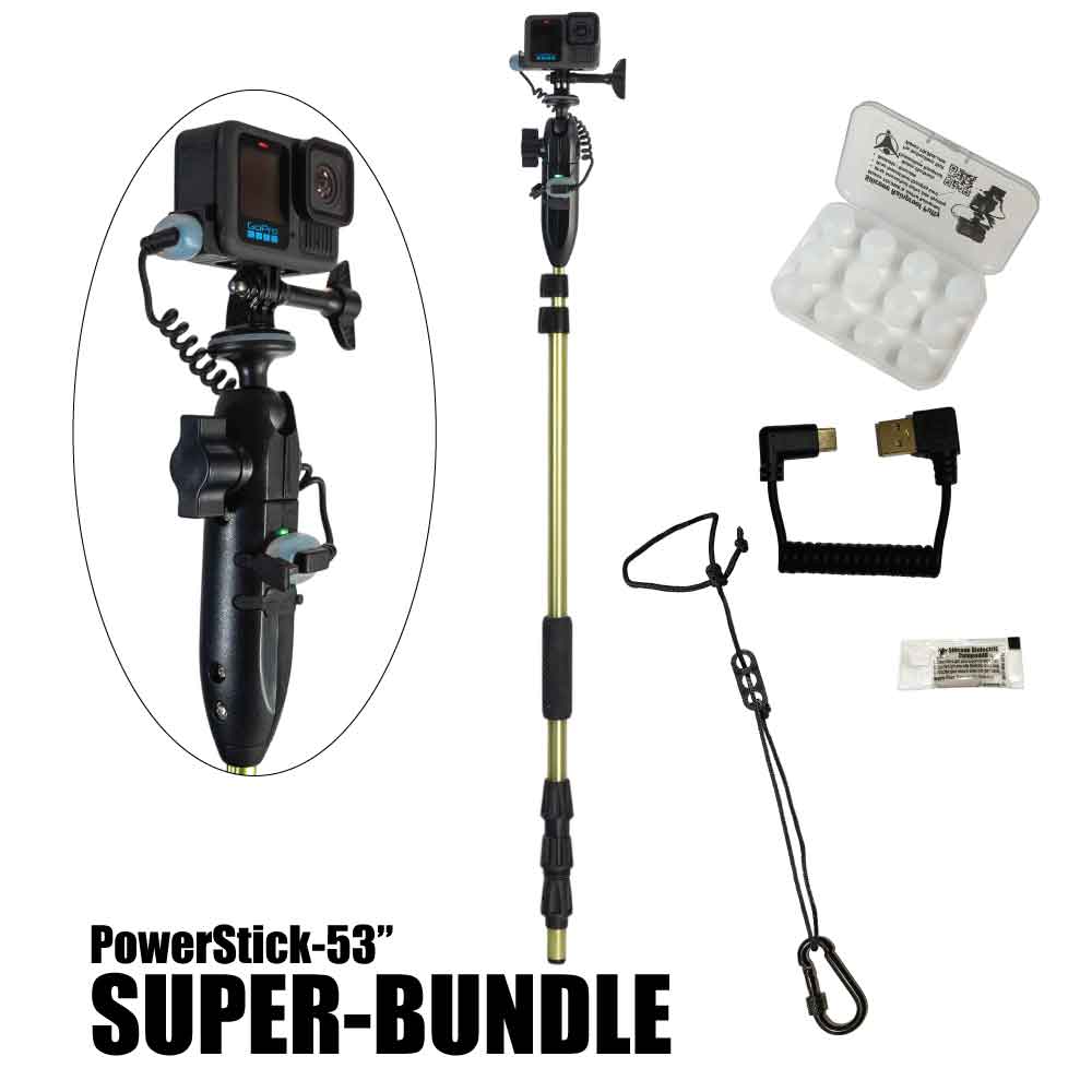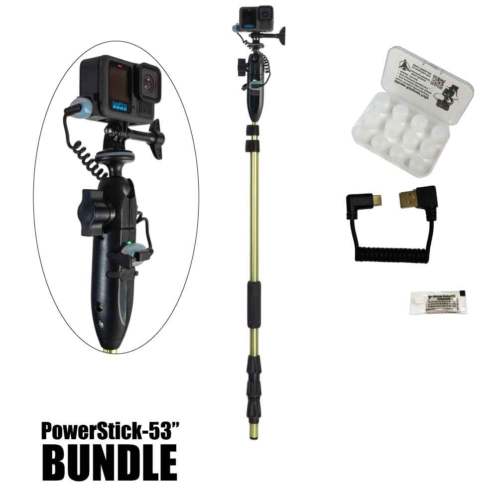 PowerStick-53" is the game-changer that started it all and what the pros use to mount & provide constant power to their GoPro, DJI & ALL other action cameras on the planet. Can mount and power your cell phone too with the optional phone mount!