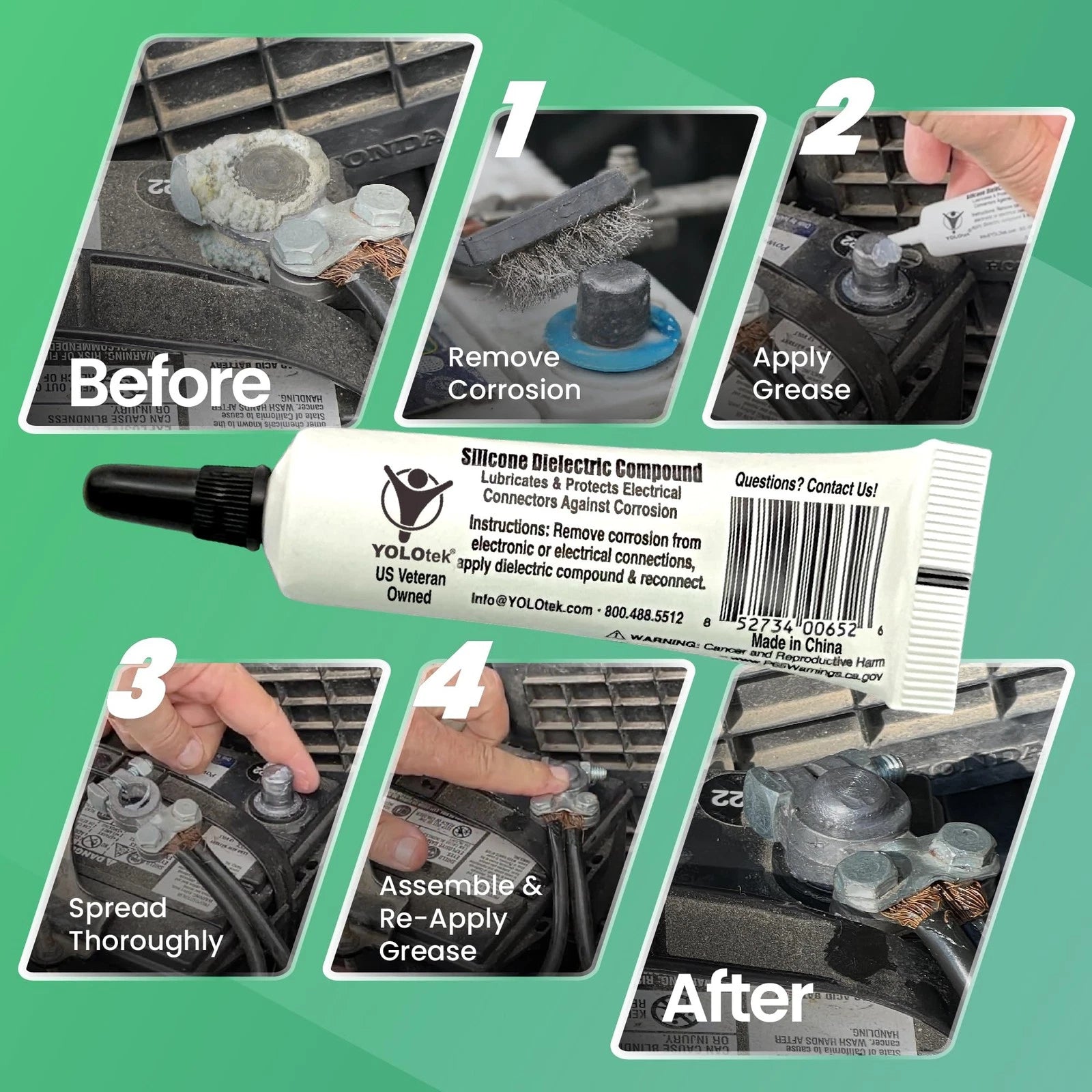 Silicone Dielectric Grease / Compound is what you need to keep your navlight port 2pins clean and ready to provide all-day power to your GoPro, DJI, other action camera or phone. Just like your car battery can build up corrosion if you don't keep air/moisture away, Silicone Dielectric Compound will keep your port and 2pins clean and corrosion-free. You can use Silicone Dielectric Compound on all your electric connections on your boat such as fish finders, batteries and more. Also, works great in your GoPro, DJI or other USB powered devices and in your YOLOtek USB ports too.