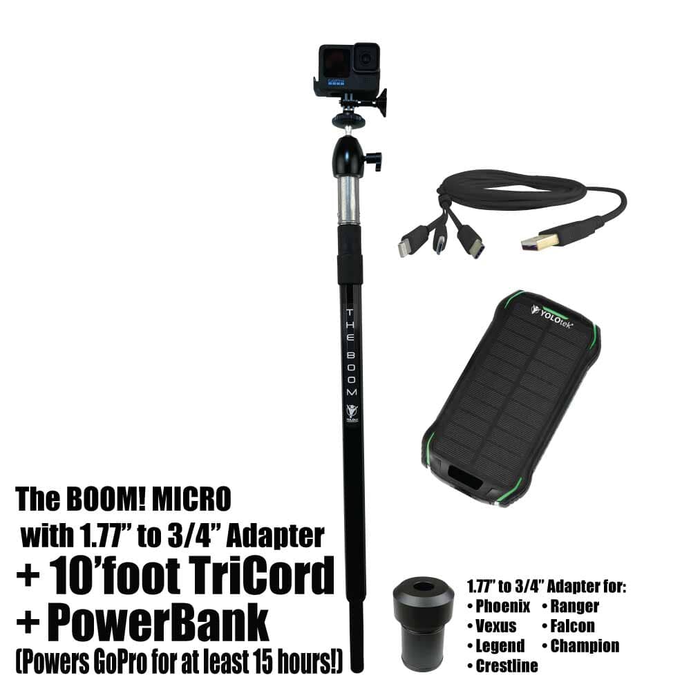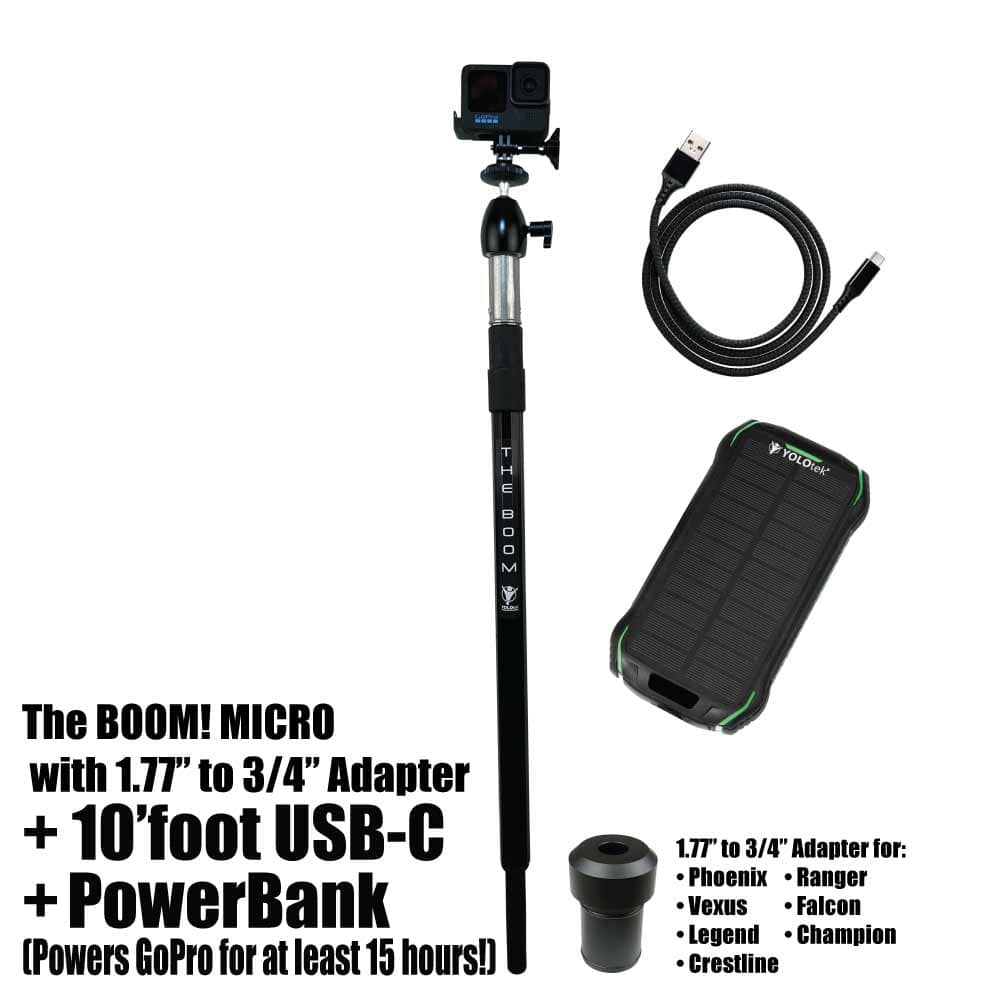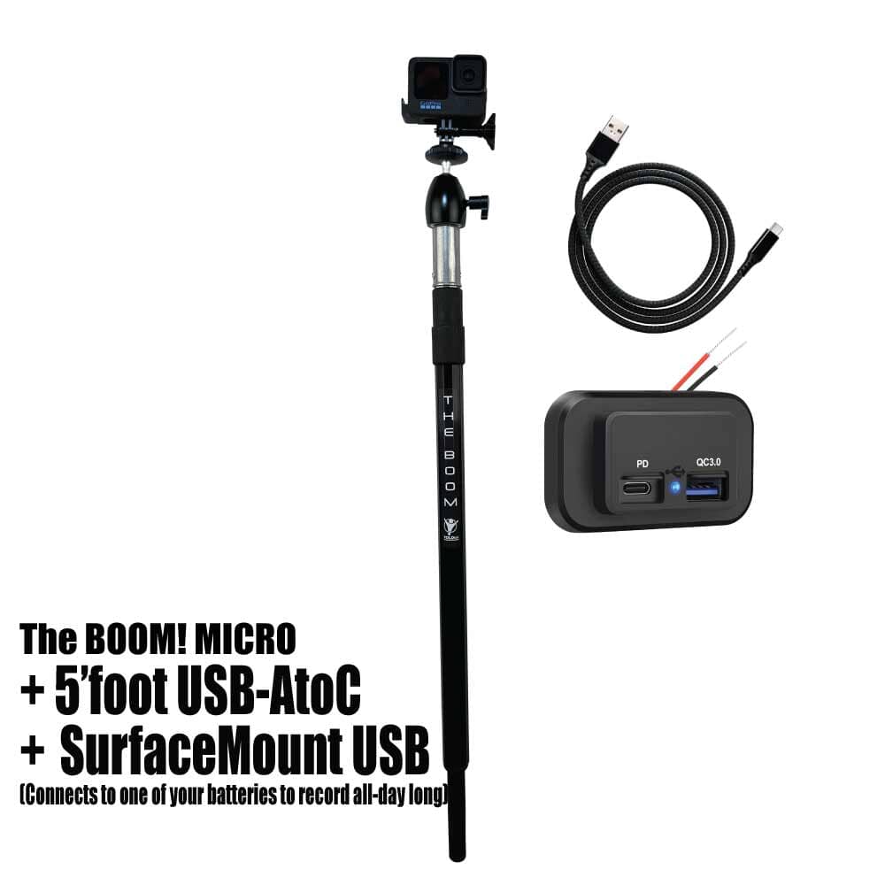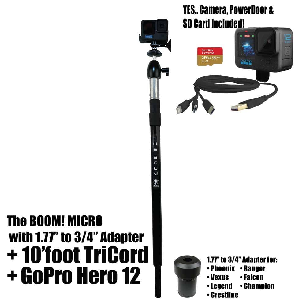 THE BOOM! Micro is the epic action camera mount you have been waiting for to hold your GoPro, DJI, or any action camera. Secures into your 3/4" seat connector on your boat. Made of aircraft grade aluminum. Extremely strong. Extends from approx 26" to 36" to help you get those amazing shots. You won't believe it until you see it. You will love this epic mount.