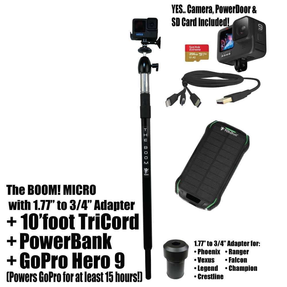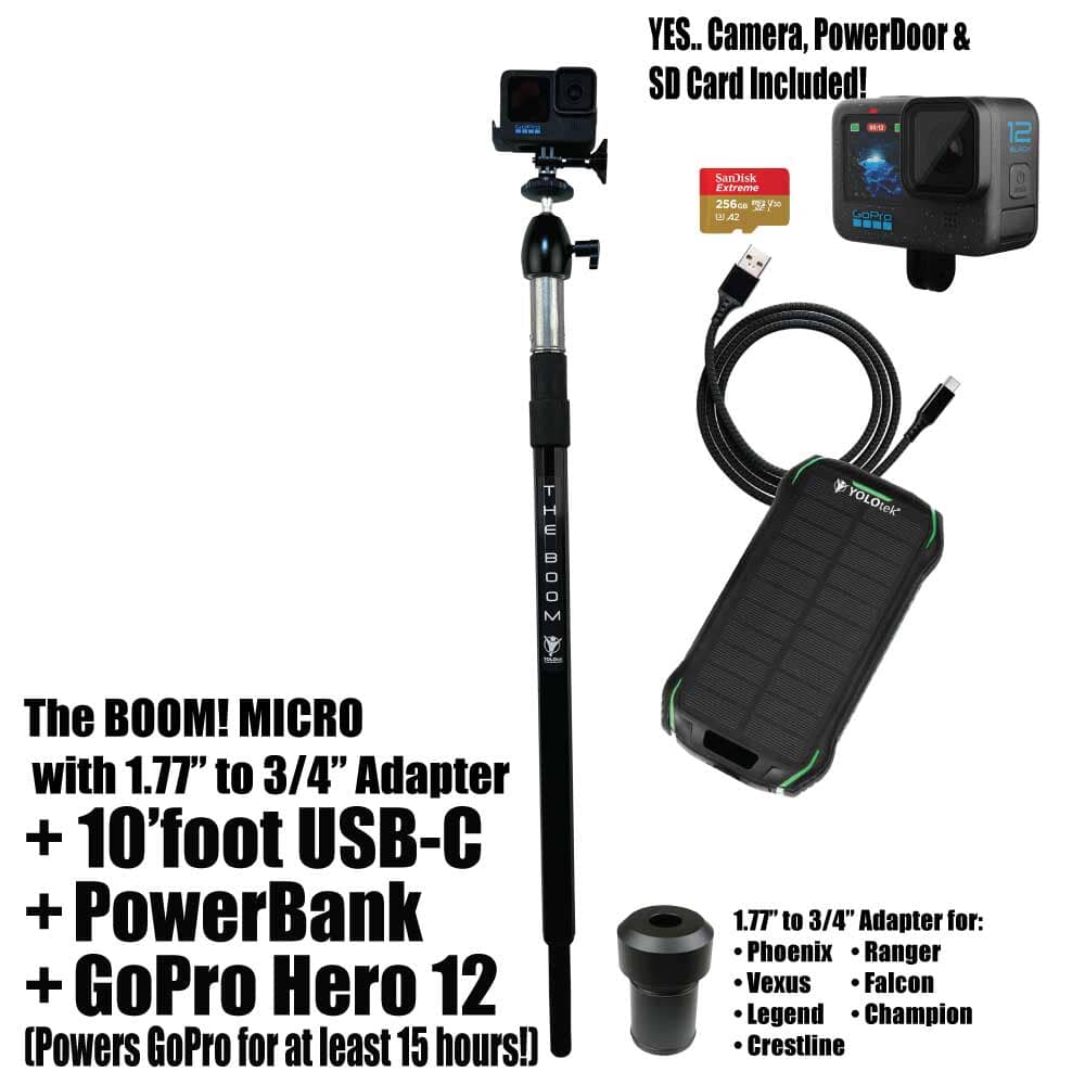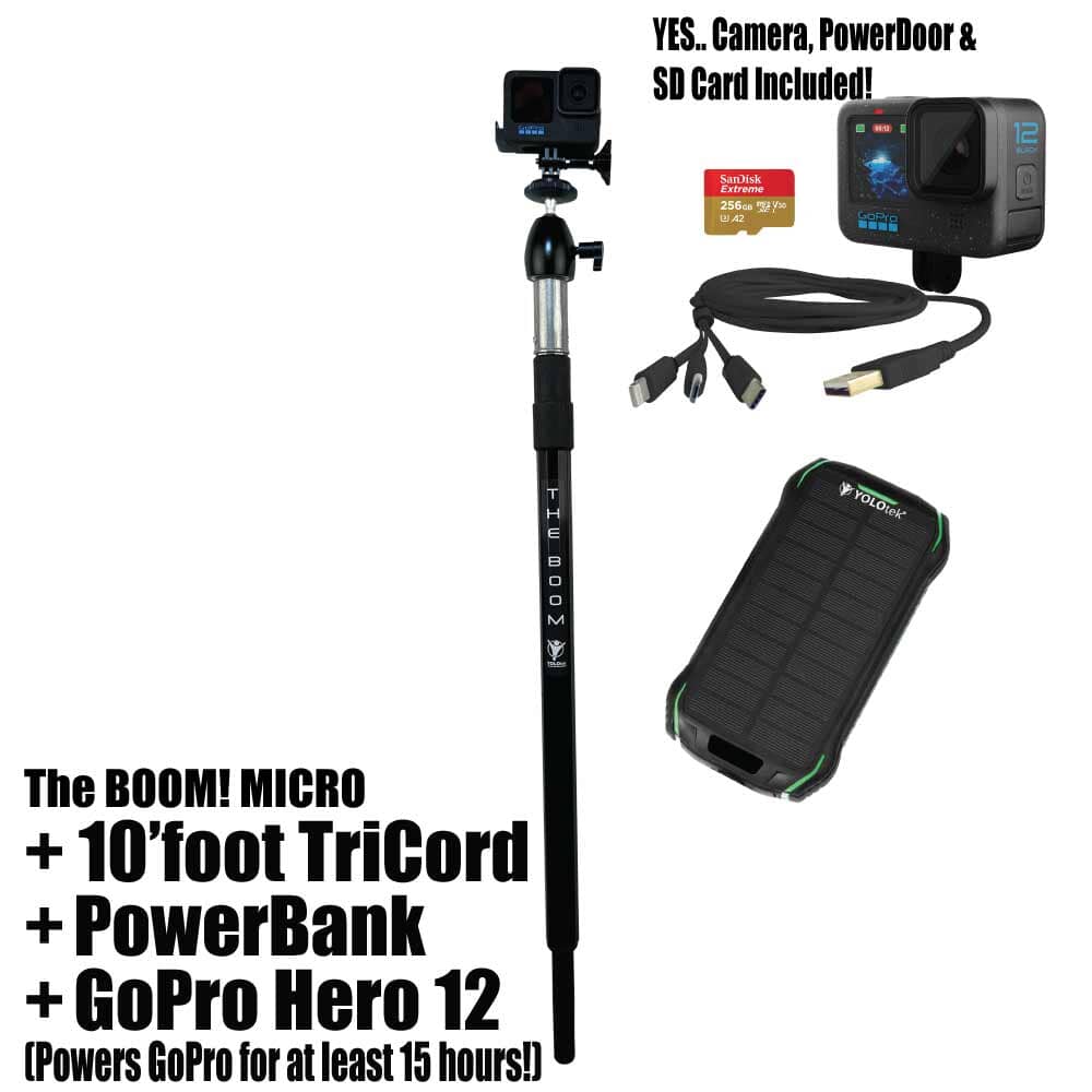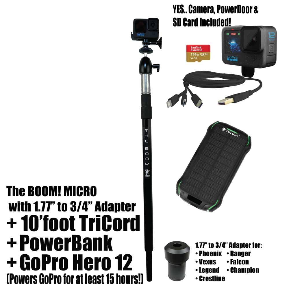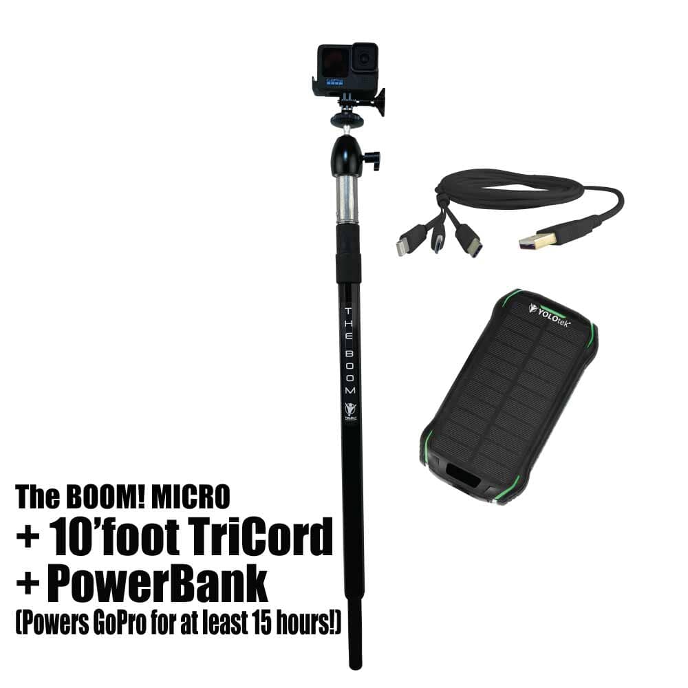 THE BOOM! Micro is the epic action camera mount you have been waiting for to hold your GoPro, DJI, or any action camera. Secures into your 3/4" seat connector on your boat. Made of aircraft grade aluminum. Extremely strong. Extends from approx 26" to 36" to help you get those amazing shots. You won't believe it until you see it. You will love this epic mount.